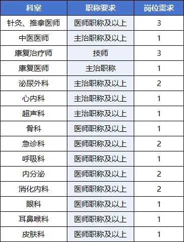 医院始终坚持“以人为本、以患者为中心”的服务理念,秉承“厚德、博爱、精医、仁术”的院训,为患者提供更加优质、高效的医疗服务,竭诚为人民群众健康保驾护航。立足基层、服务患者、奉献社会,成为一家政府认可、百姓信赖的医院!为满足我院发展需要,切实加强人才队伍建设,现面向社会公开招聘医疗技术人员,有关事宜公告如下: