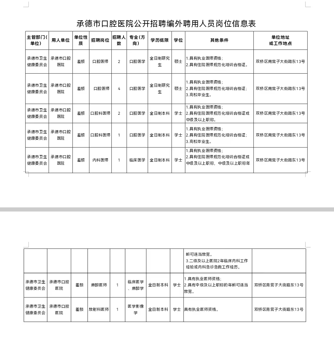 附件:承德市口腔医院公开招聘编外聘用人员岗位信息表