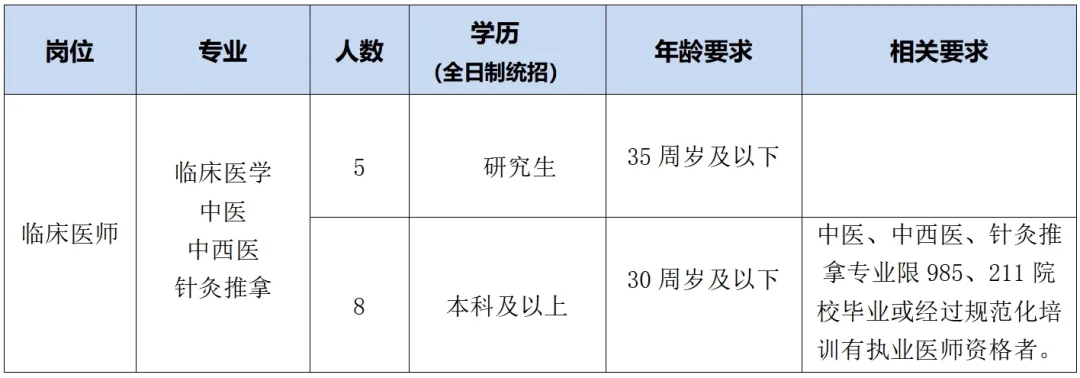 因工作需要,经我院党委研究决定向社会公开招聘临床医师13名。现将有关事项公告如下: