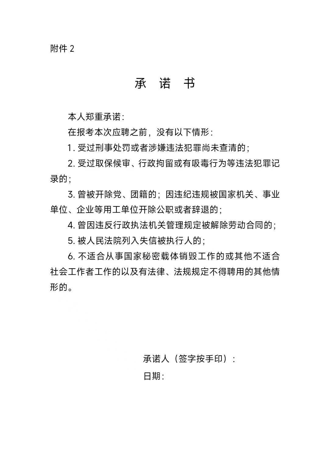 (7)报名时,本人需签署承诺书(附件2),承诺没有不得报考的情形。