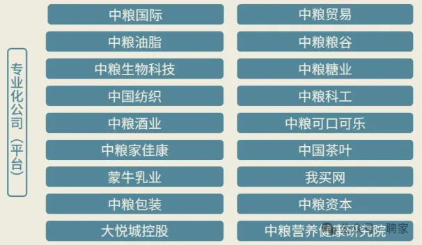 中粮集团以农粮为核心主业,聚焦粮、油、糖、棉、肉、乳等品类,同时涉及食品、金融、地产领域。