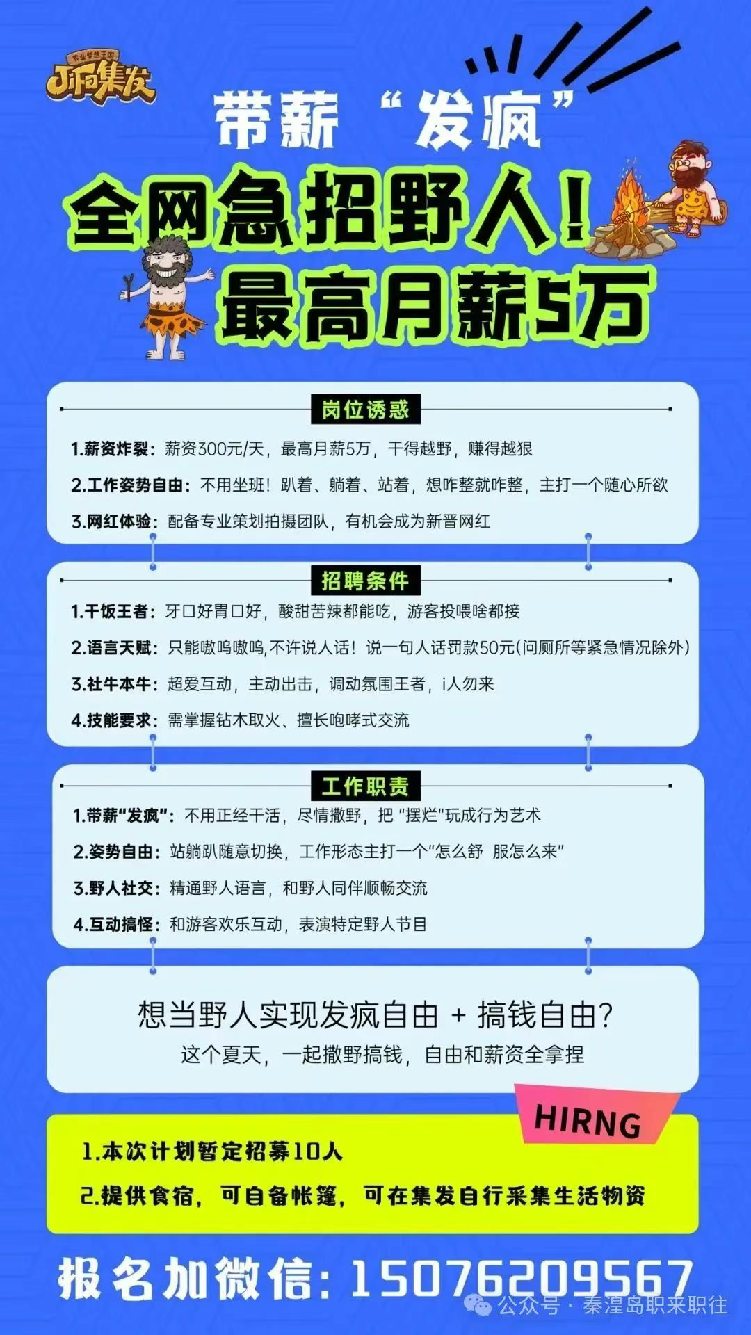 秦皇岛一景区日薪300元招野人 工作主打随心所欲