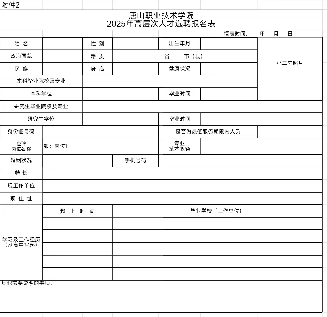 附件2:唐山职业技术学院2025年选聘报名表