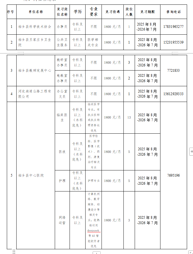 邢台柏乡县人力资源和社会保障局招收见习人员的公告(第一批)