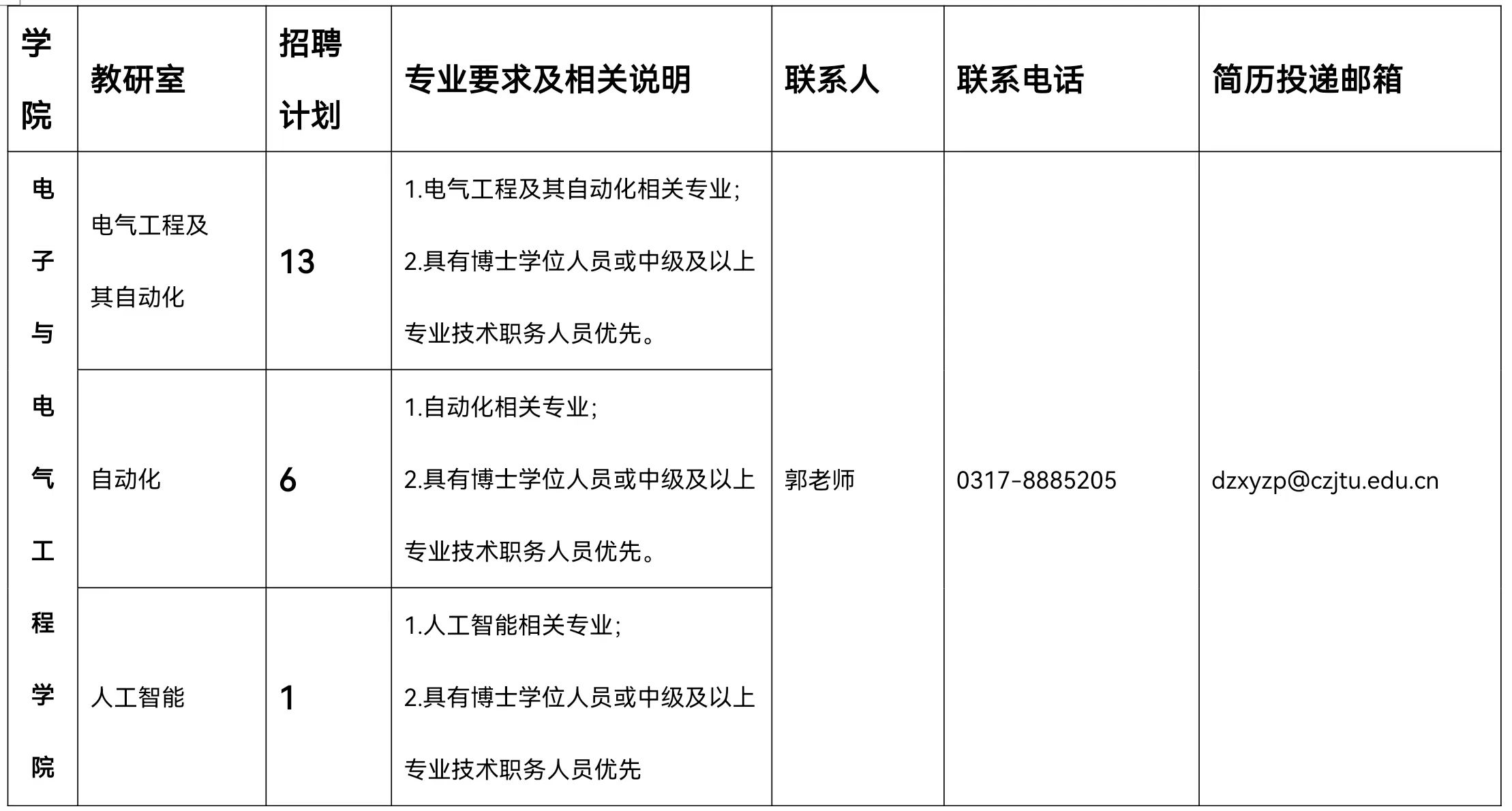 沧州交通学院电子与电气工程学院2024-2025学年教职工招聘20人公告