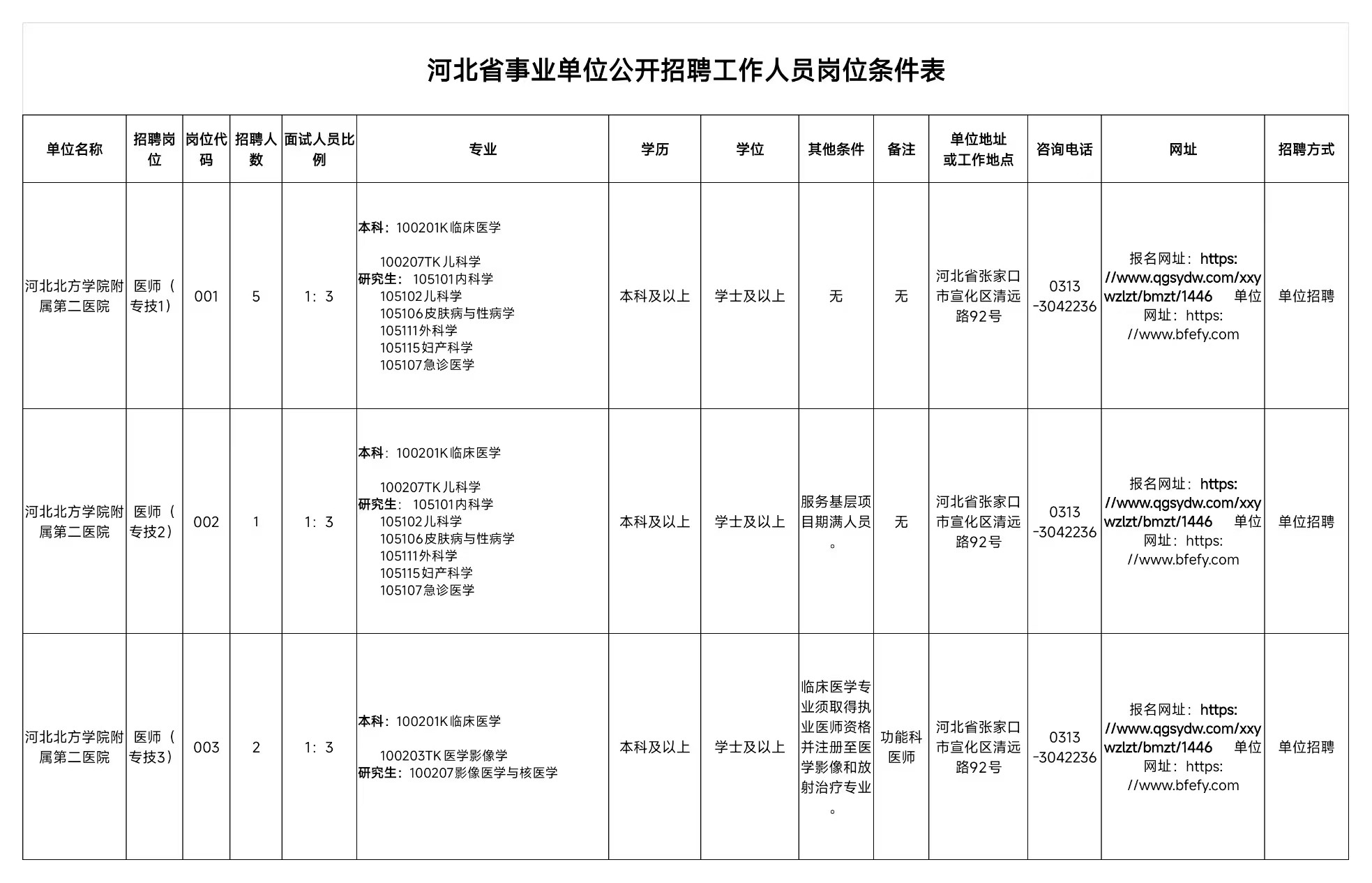 政策咨询电话:0313-3042236(河北北方学院附属第二医院组织人事科)