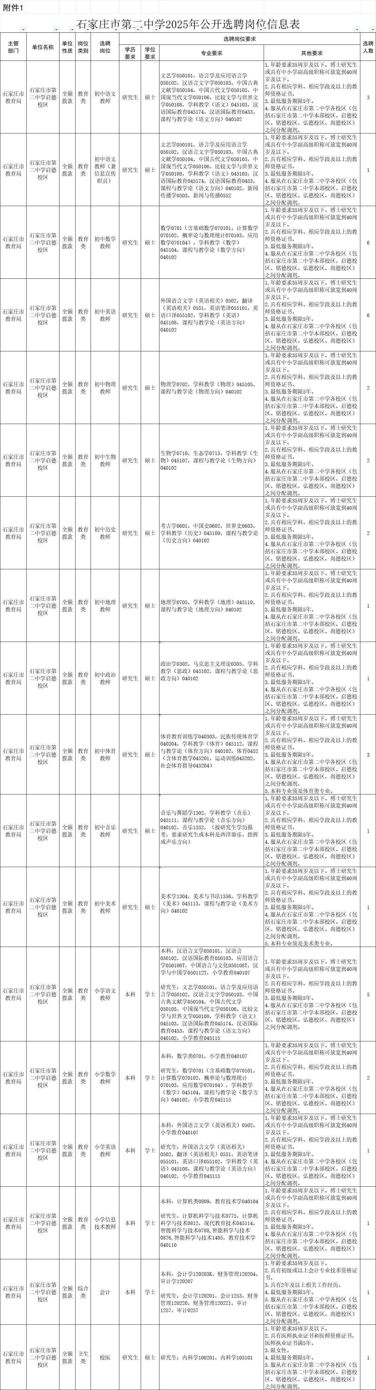 1.石家庄市第二中学2025年公开选聘岗位信息表