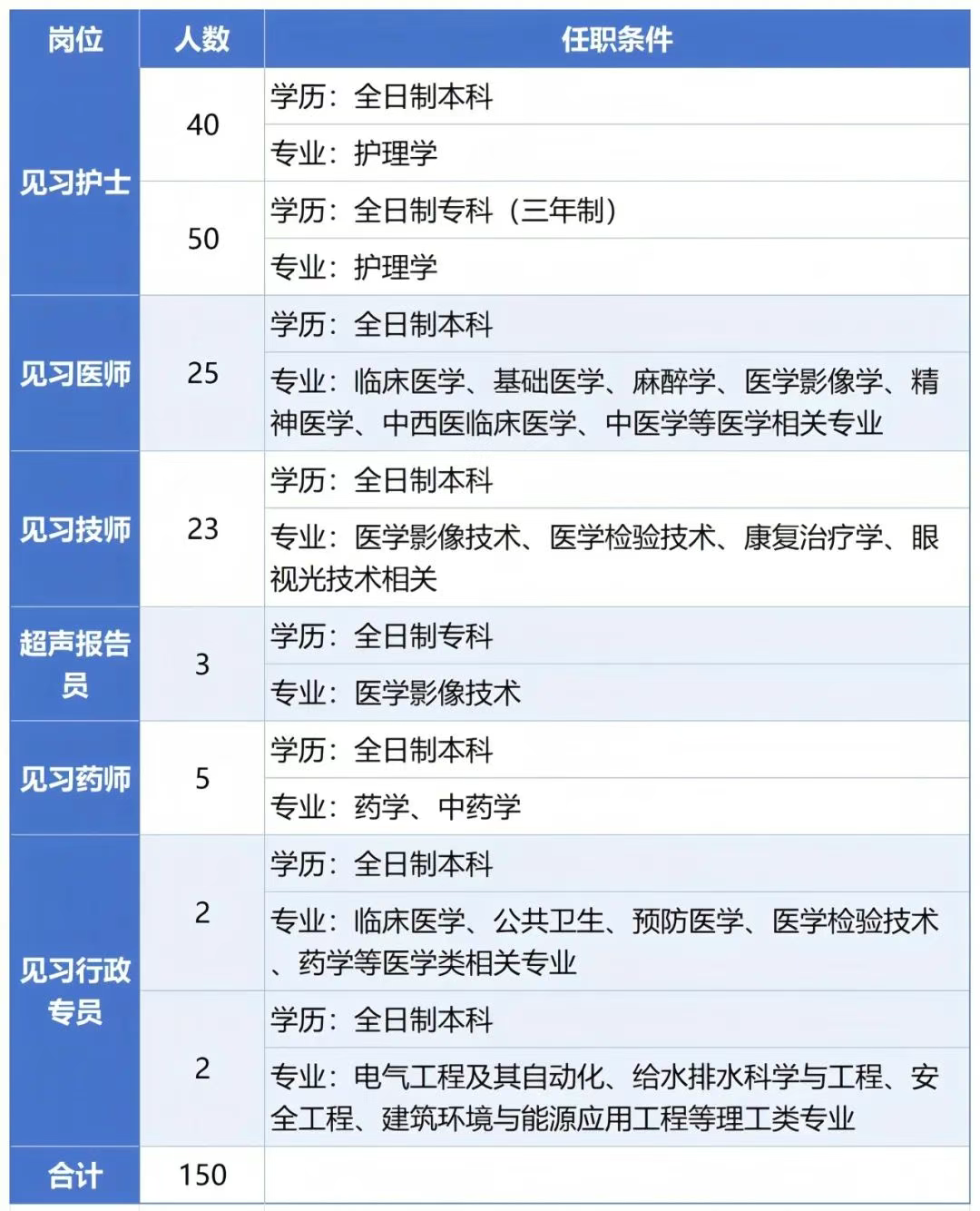 拟招收青年就业见习人员见习医师、见习护士、见习技师及见习行政专员共150名。唐山中心医院微信公众号、唐山中心医院官方网站发布招收信息,请报名者注意浏览。