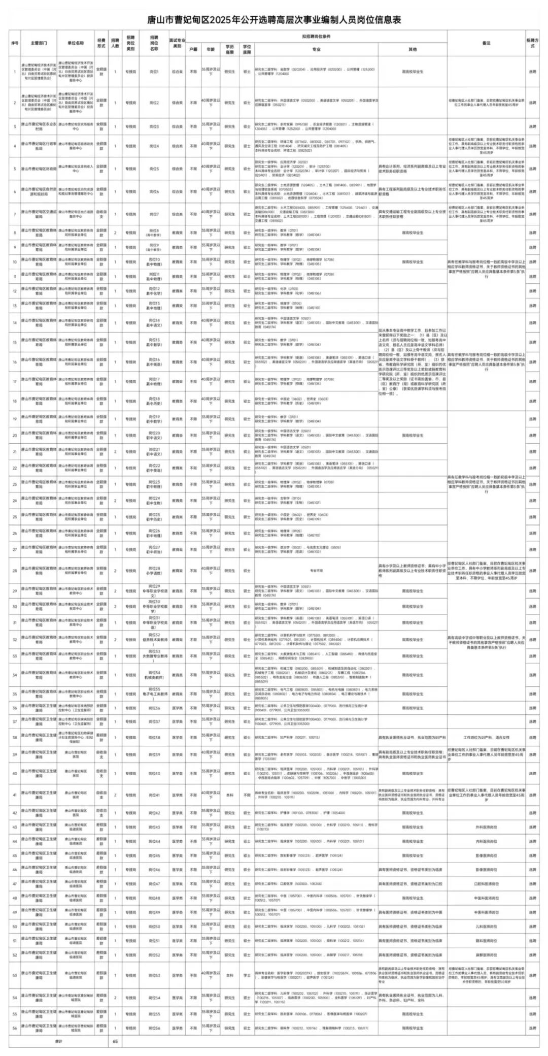 唐山市曹妃甸区2025年公开选聘65名高层次事业编制人员公告