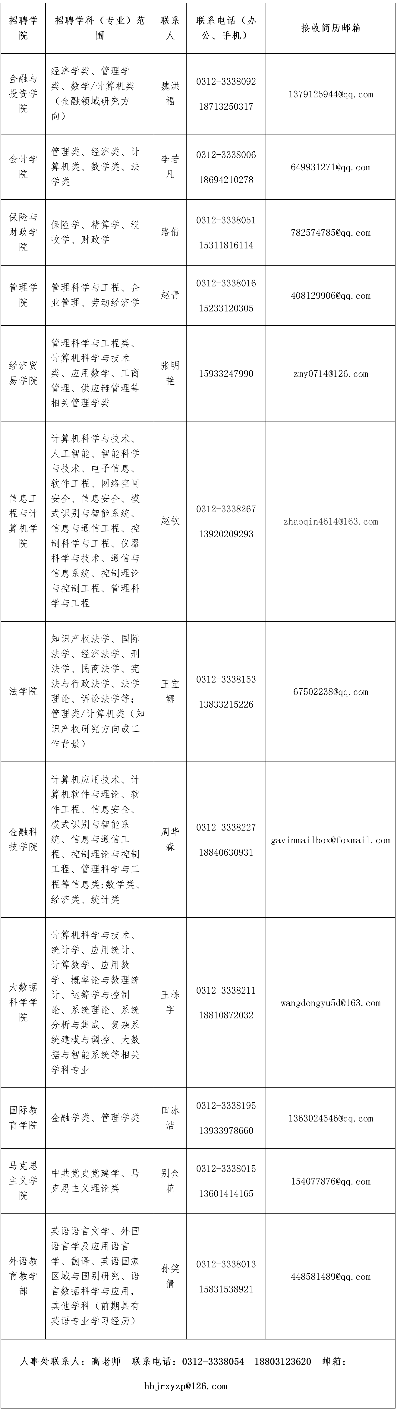 1.凡符合本公告所公布招聘学科和岗位要求人员,请将简历发送到各招聘部门邮箱或我校人事处邮箱(邮件标题请注明:姓名+专业+应聘部门)。