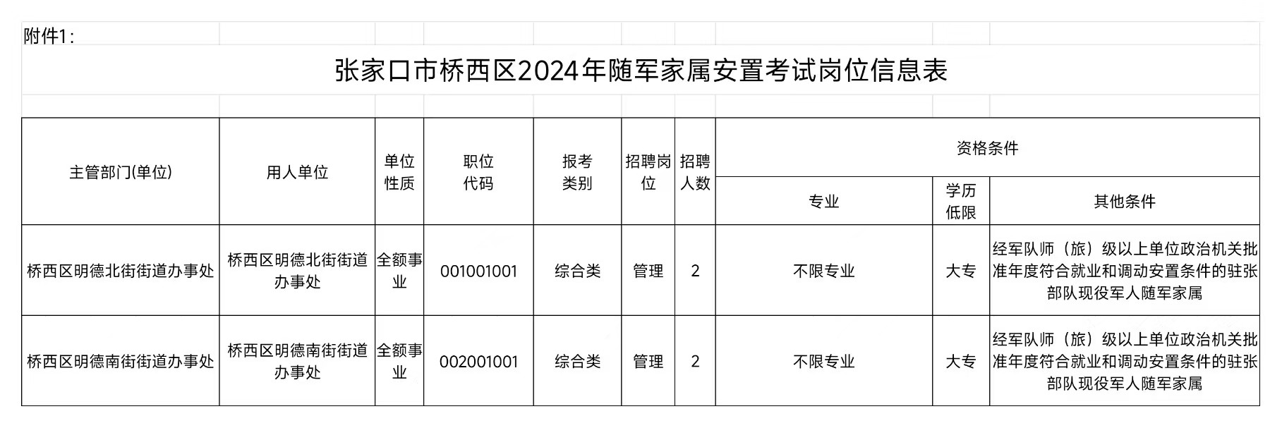 张家口市桥西区2024年随军家属就业安置公告(4人)