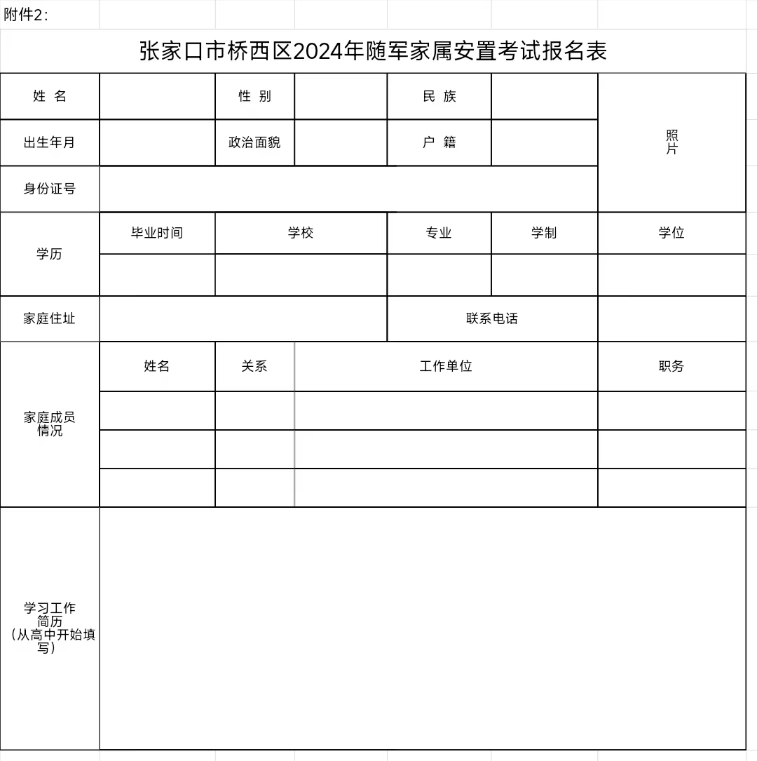 附件2:张家口市桥西区2024年随军家属安置考试报名表.xlsx