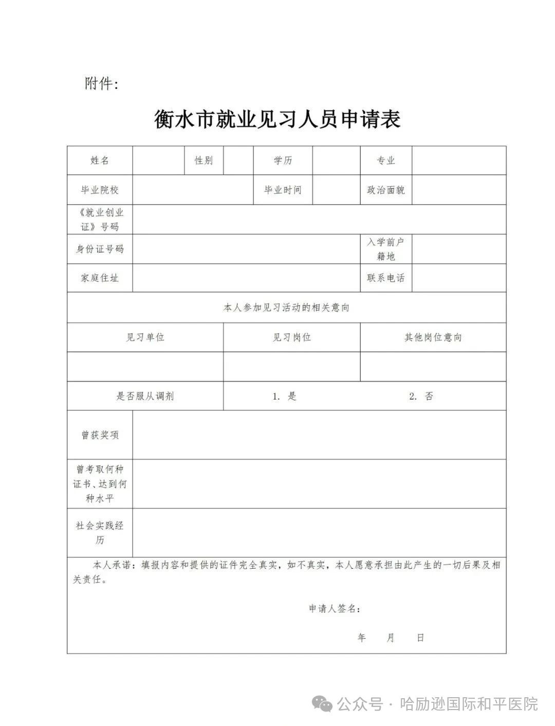(2)报名资料:①《衡水市就业见习人员申请表》(见附件);②身份证、户口本、毕业证、社保卡。(以上材料均需提供原件和复印件!)