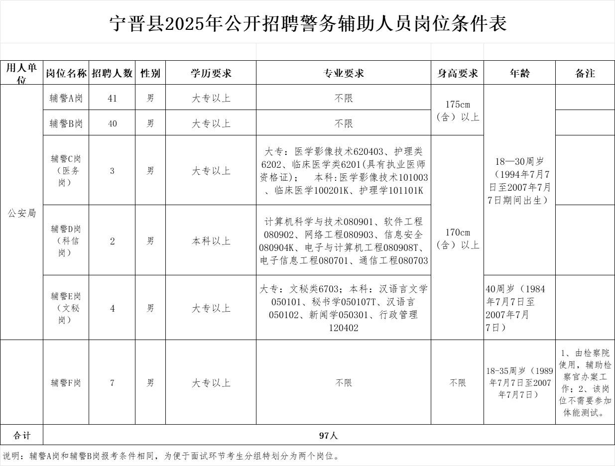 附件:宁晋县2025年公开招聘警务辅助人员岗位条件表