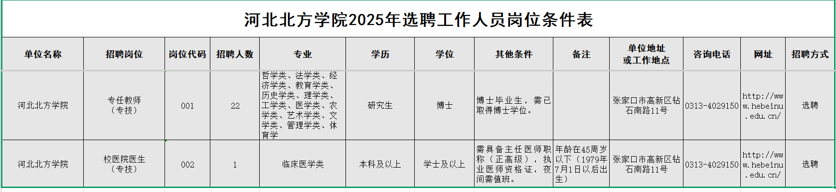 附件:1.河北北方学院2025年选聘工作人员岗位条件表.xls