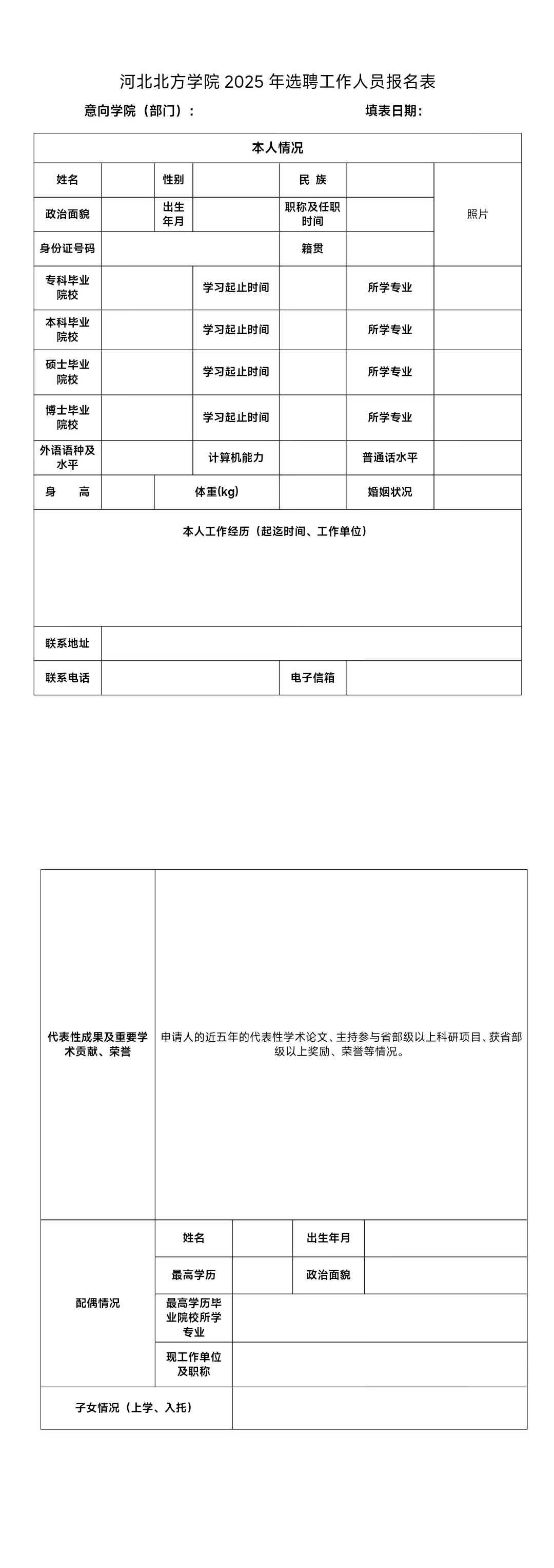 (4)河北北方学院2025年选聘工作人员报名表(附件2)