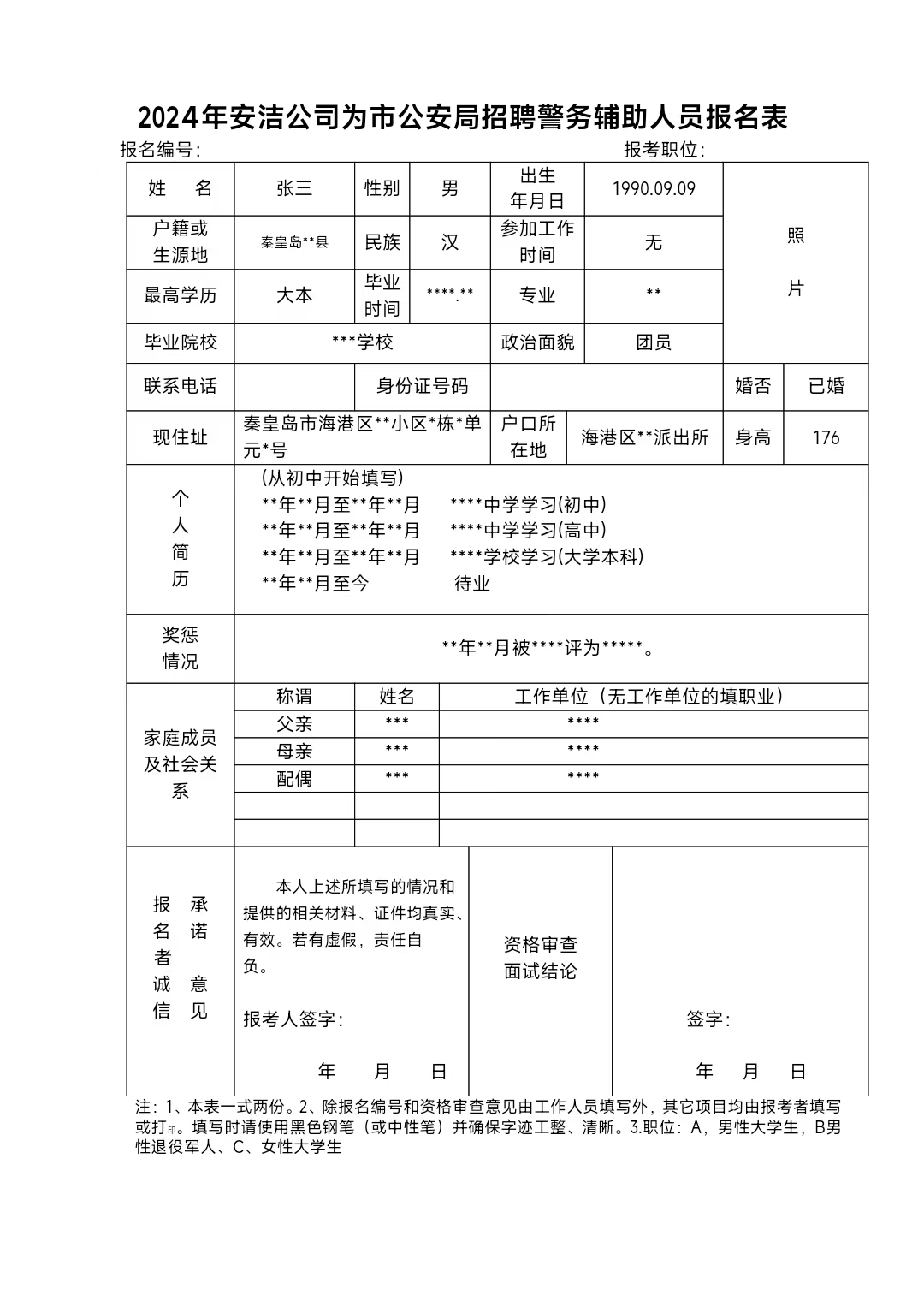 (5)《2025年招聘警务辅助人员报名表》一式两份(可自行下载打印)。