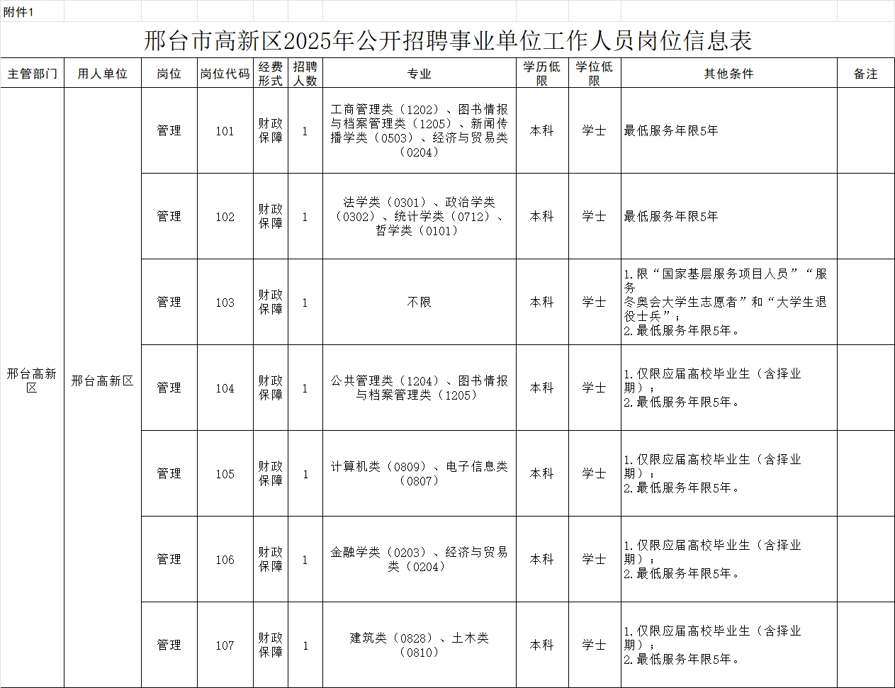 附件:邢台高新区2025年公开招聘事业单位工作人员岗位信息表