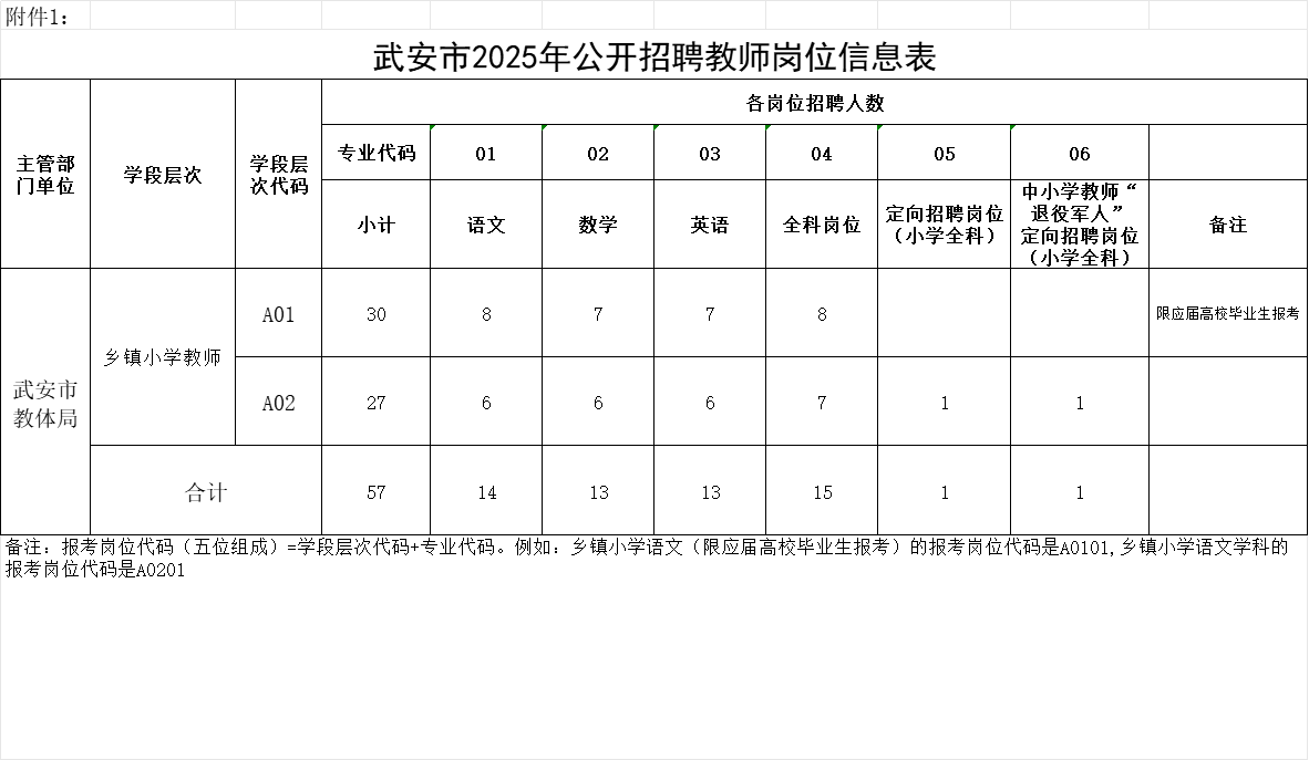 附件:1、武安市2025年公开招聘教师岗位信息表