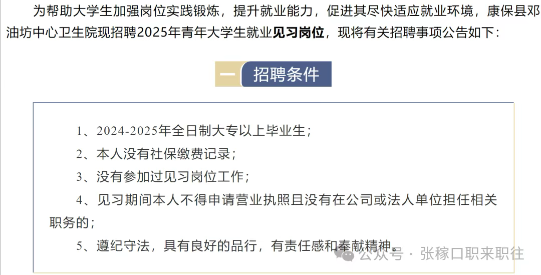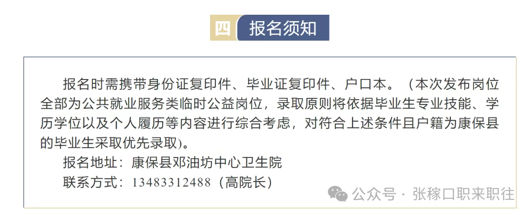 张家口市康保县邓油坊中心卫生院招聘见习岗的公告
