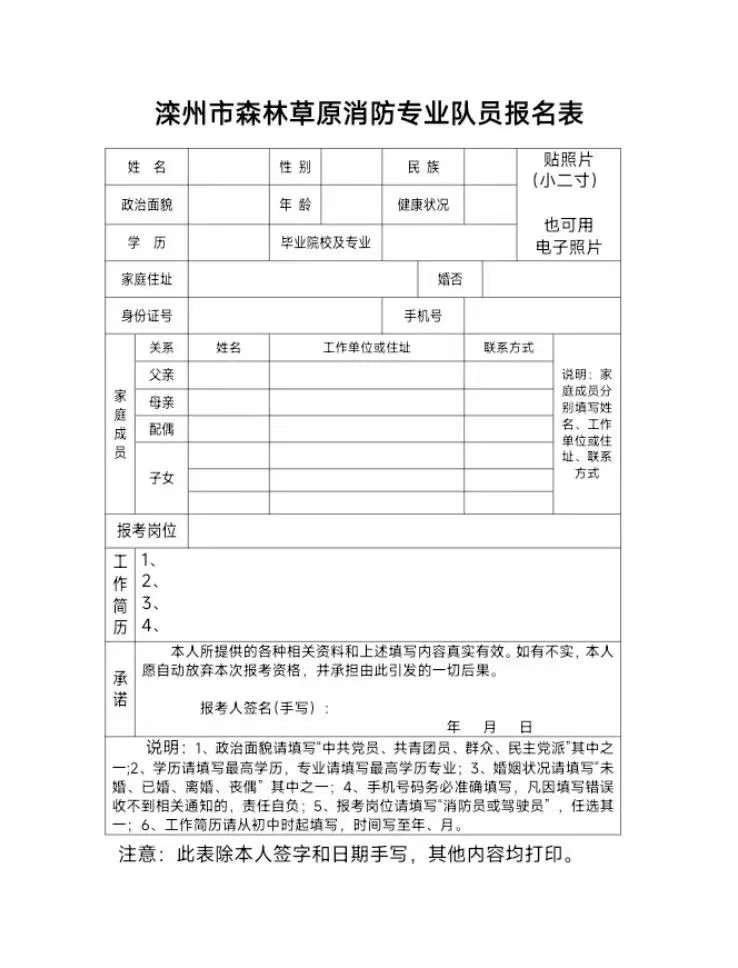 2、本人拥护中国共产党领导和社会主义制度,志愿加入滦州市森林草原消防专业队伍从事森林草原防灭火工作,具有良好的道德情操和心理素质、纪律观念强,品行端正,有奉献、吃苦耐劳的精神。