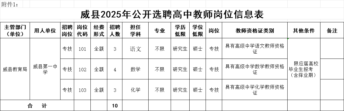 附件:1.威县2025年公开选聘高中教师岗位信息表