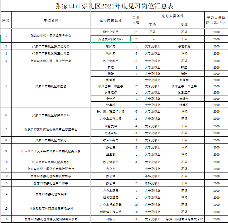附件:崇礼区2025年度见习岗位汇总表.xlsx