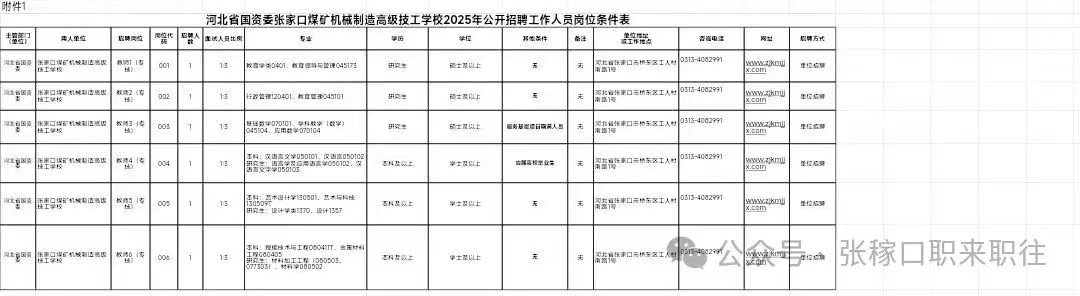 1.张家口煤矿机械制造高级技工学校2025年公开招聘工作人员岗位条件表.xls