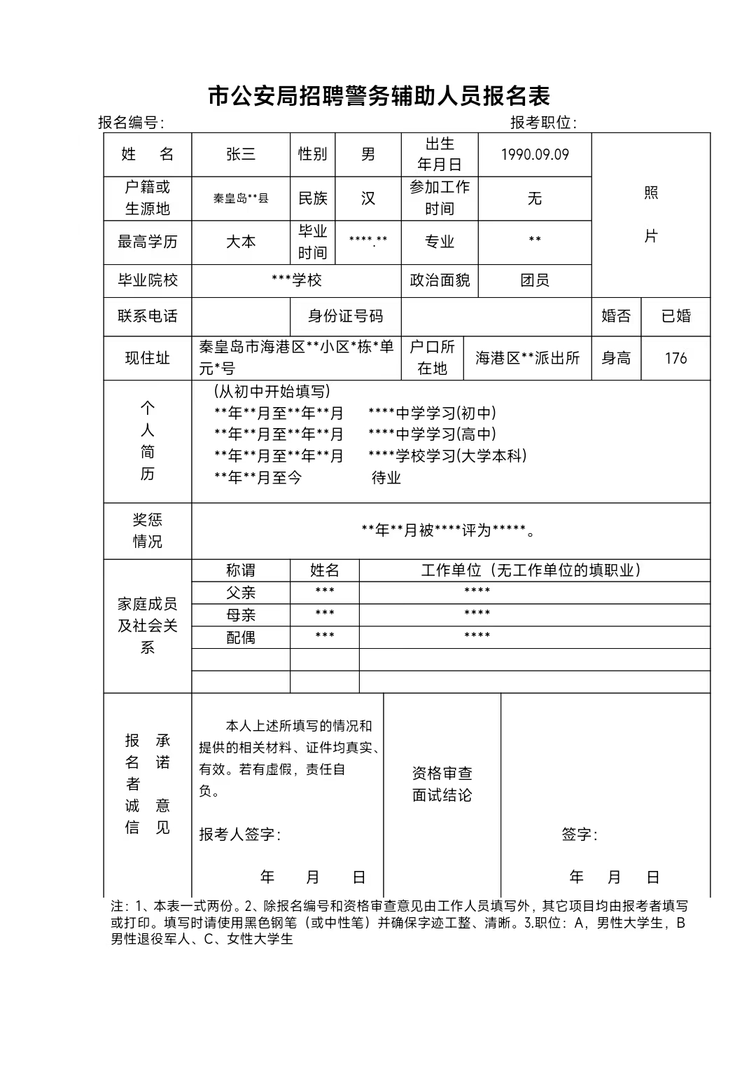 (5)《2025年招聘警务辅助人员报名表》一式两份(可自行下载打印)。