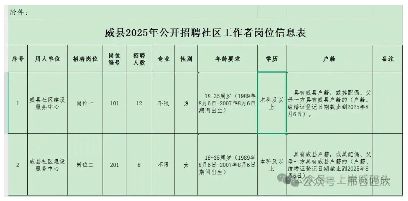 附件:威县2025年公开招聘社区工作者岗位信息表