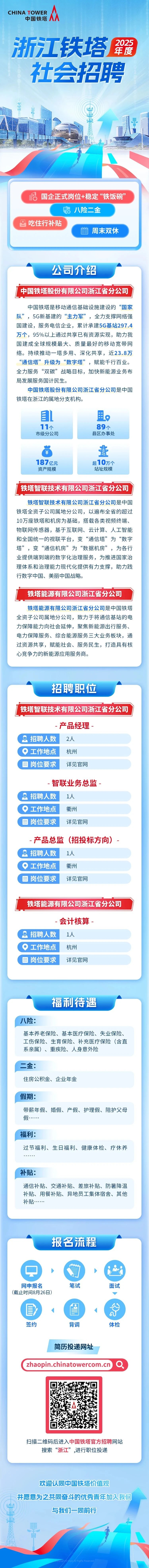国企正式岗稳定铁饭碗,八险二金!中国铁塔分公司2025年社会招聘!