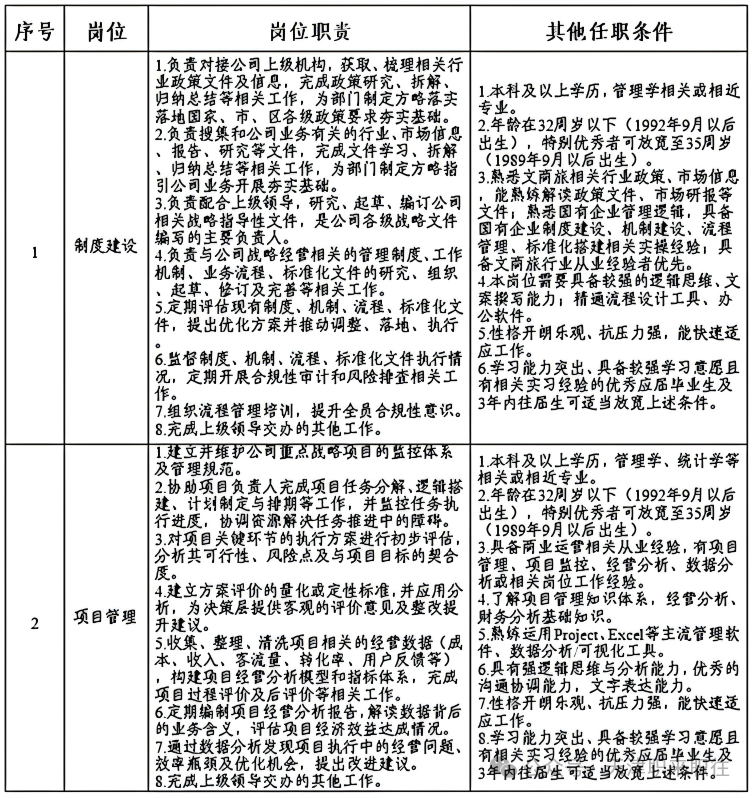 为满足津北文旅发展需求,特招聘劳务派遣制工作人员2人。