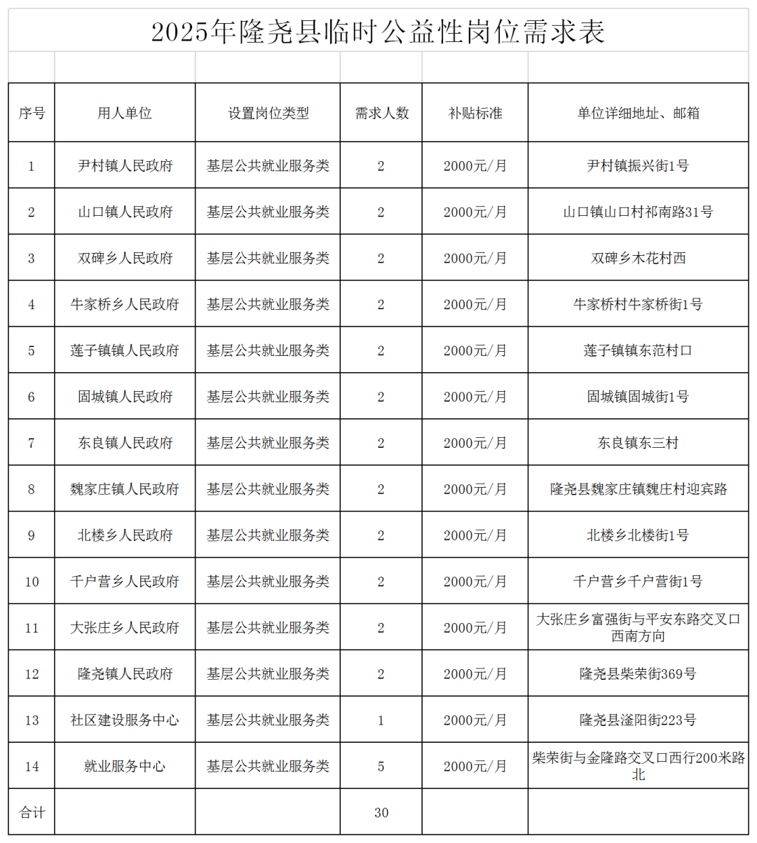 为做好2025年离校未就业高校毕业生就业服务工作,按照省市要求,我县拟招聘高校毕业生临时公益性岗位30名(具体岗位信息见附件1),主要用于城乡社区等基层公共就业服务、公共管理和社会服务等基层服务方面,现将有关事宜通知如下: