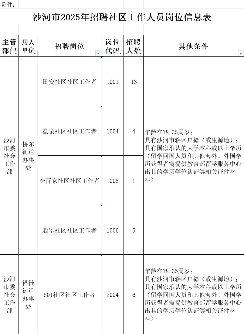 附件:沙河市2025年招聘社区工作人员岗位信息表