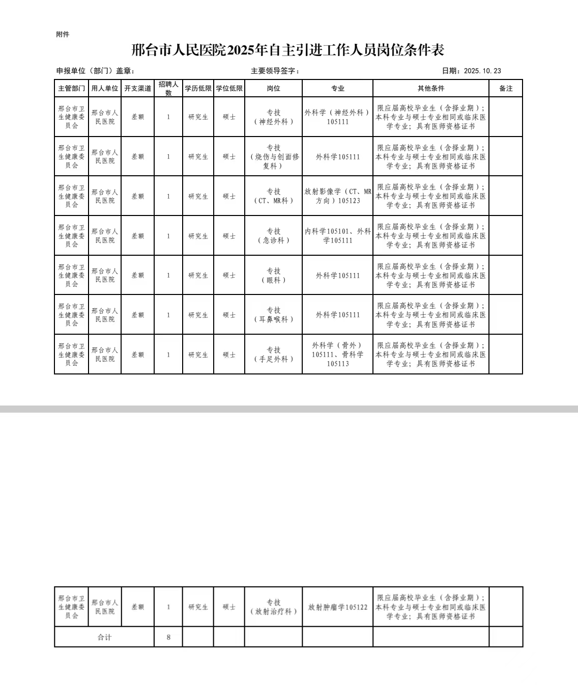 附件:1.邢台市人民医院2025年自主引进工作人员岗位条件表.pdf