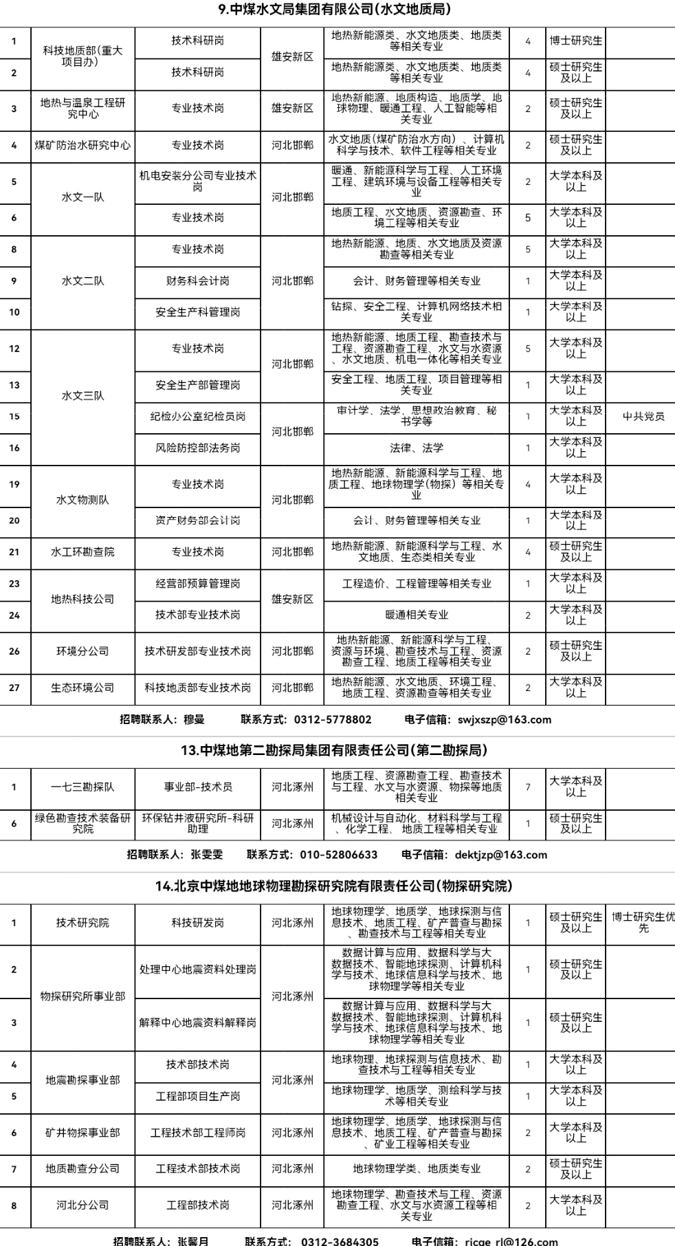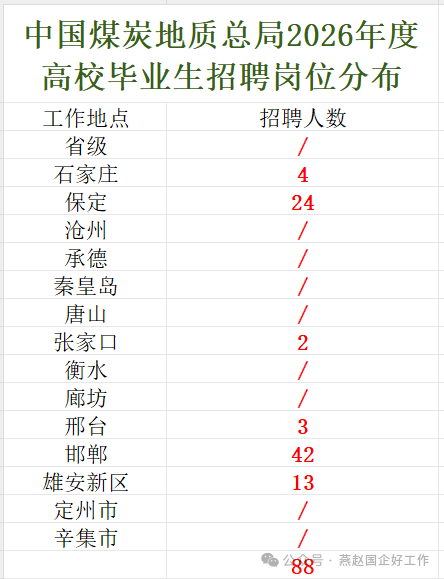 中国煤炭地质总局2026年度应届高校毕业生招聘468人公告(河北88人)