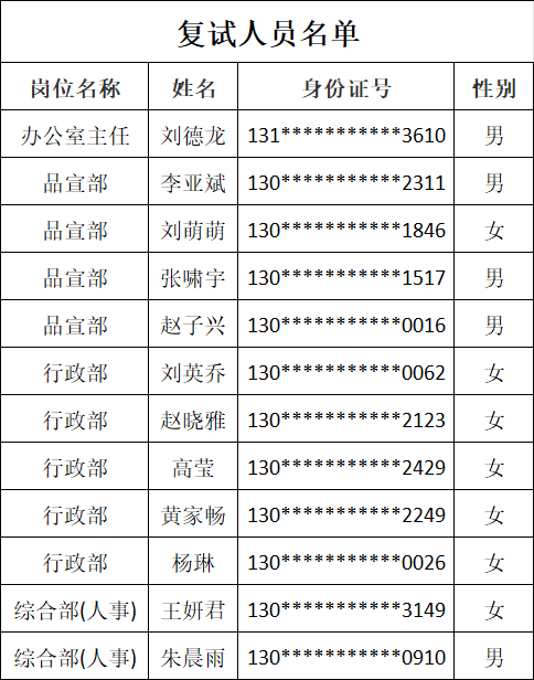 二、进入复试人员名单
